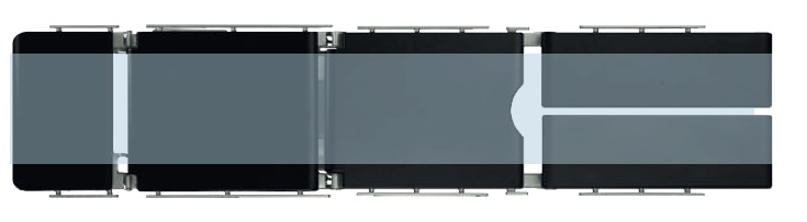 - Beinplatten einzel verstellbar: 90° abwärts, 25° aufwärts und 180° spreizen