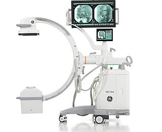 C-Bogenliegen und Spritzentische mit freier Ausladung der Carbonplatte haben einen sehr gutem C-Bogenzugang, auch im Halswirbelsäulenbereich.