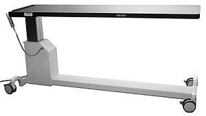 Die Röntgenliege A-100-E mit einer 51 cm breiten Carbonplatte ist zur interventionellen Schmerztherapie oder zu periradikulären Therapien an der Wirbelsäule geeignet. Dieser fahrbare Infiltrationstisch oder auch Spritzentisch für die Facetteninfiltration ist mit elektrischer Höhenverstellung mit Batteriebetrieb (kein Kabel im Arbeitsbereich) lieferbar.