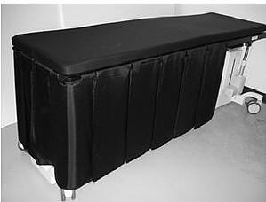 Ein Streustrahlenschutz im Aufenthaltsbereich des Untersuchers und des medizinisches Assistenzpersonals als Unterkörperstreustrahlenschutz ist lieferbar.